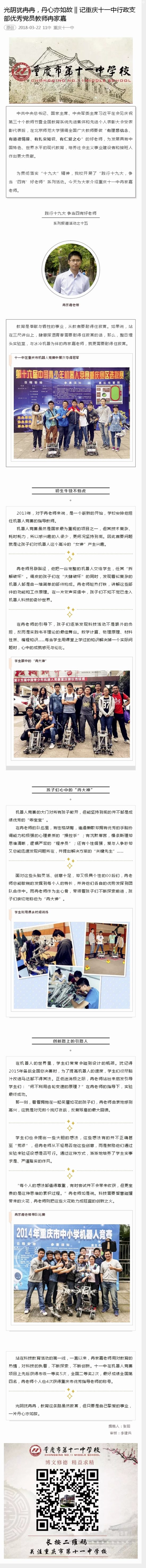 [重庆11中官方微信]光阴犹冉冉,丹心亦如故 || 记重庆十一中行政支部优秀党员教师冉家嘉
