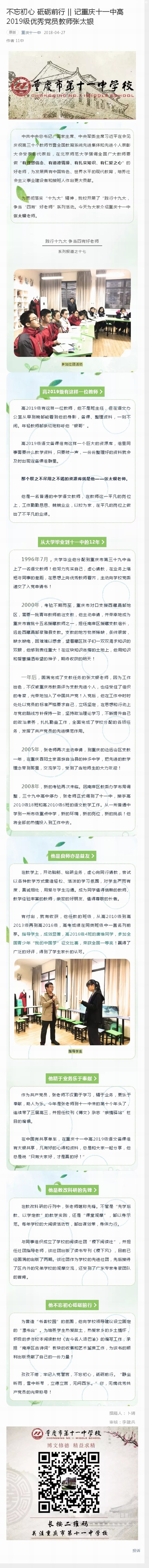 [重庆11中官方微信]不忘初心 砥砺前行 || 记重庆十一中高2019级优秀党员教师张太银