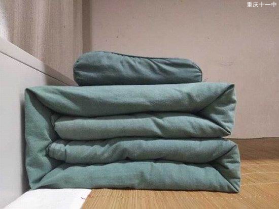 “出门看内务,进门看内务”,寝室内务整理也是新生军训内务的必修课程之一。教官们进入宿舍楼指导新生整理内务,对宿舍物品摆放、被褥叠放、地面清洁提出了严格要求并指出了在细节整理方面的注意事项。随后,教官们亲自为同学们演示了叠好军被的几个步骤,并一边示范一边讲解要领。一床蓬松的棉被就在简单的“叠、压、捋”几个动作之下,变成了四四方方的“豆腐块”。
