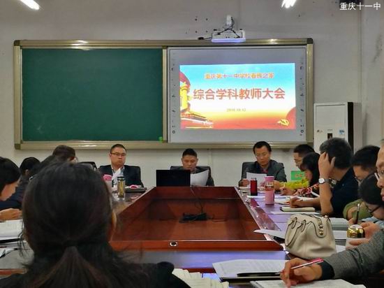 2018年10月12日晚18:00,高2019级在CBD校区二楼年级会议室召开了综合学科教师大会。会上,教务处主任兼高2019级年级主任,许刚强主任对下周即将进行的综合学科考试进行了考前安排和动员,并对综合学科的老师们的命题工作、审题工作、监考工作、阅卷工作、答题技巧等方面做了进一步的要求。