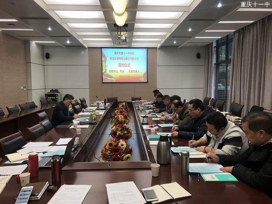 2018年12月26日下午,重庆市第十一中学校召开行政办公会,会上举行了有偿补课专项治理工作责任书签约仪式。学校党委书记、校长钟进友代表专项治理工作小组同各处室、年级负责人签订了责任书,并对行政干部提出了以身作则、带好队伍的要求,拉开了专项治理工作的序幕。