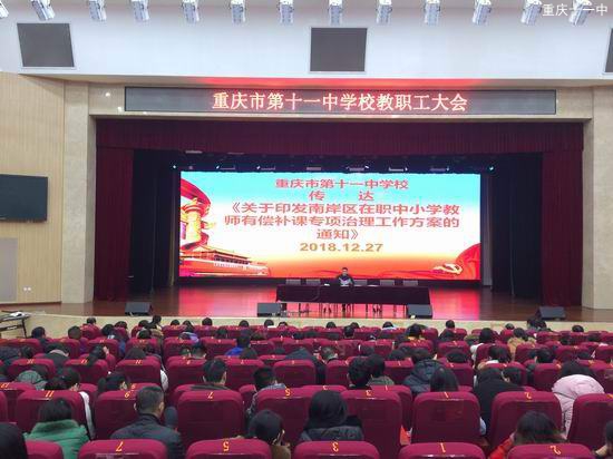 为规范教师从教行业,树立教师队伍的良好形象,重庆市第十一中学校在全体教职工中开展有偿补课专项治理工作,强化师德师风。