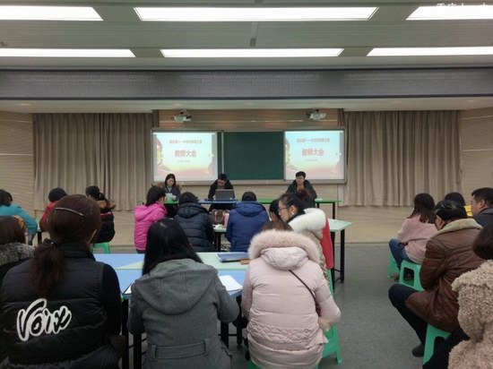 2018年12月20日下午第四节课,初2019级全年级教师在多媒体教室一举行了九年级上期备课组长经验交流会。
