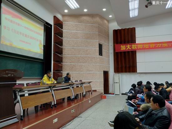 会上,刘运超书记首先带领全体党员集中传达了中共重庆市第十一中学校委员会党务工作会上钟进友书记和欧宾副书记关于新学期党建的主要精神,再次强调了党建工作的核心作用与引领作用,要求全体党员要自觉按照党员标准规范言行,坚定理想信念,提高党员觉悟,进一步增强政治意识、大局意识、核心意识、看齐意识,坚定正确的政治方向,严守政治纪律、政治规矩,用于担当作为。
