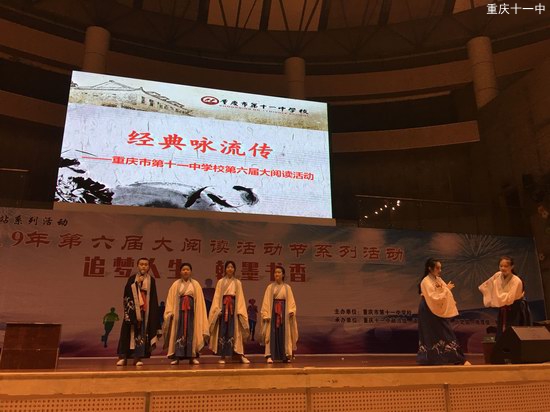 这次大阅读活动以另外一种风格将中华文化演绎地淋漓尽致——演唱、说唱、情景剧……初一初二的“演员”们将看似与现代文化不太有相似度的中华文化交织在一起,以新颖的形式传递中华文化最根本的精髓所在,这正是青少年在碎片化信息风靡的时代下的文化追求。有人曾问过:“随着时代发展,古诗之类的文化是否会落魄?”然而十一学子在大阅读活动上用精彩纷呈的表演、以铿锵有力声音回答:“中华文化永不朽!”