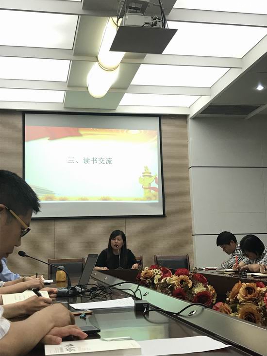 最后,由各个年级的党员教师为大家做读书交流分享。初一年级的杨柳青老师为大家分享了《恰同学少年》,生动讲述了青年毛泽东的奋斗故事;杨万华老师向大家分享了自己的多年读书心得,他提倡大家应该多读专业相关的书籍,如:《文史中国》、《重说中国近代史》《西方文明史》、《教科书里没有的近代史》、《张鸣说历史——重说中国国民性》、《中国饮食典籍史》等,从专业方面提高自身素养。初二年级周静老师与大家分享了《少有人走的路》,从个人情感的角度来分享了自己的读书心得,邓郭峰老师分享了《红梅》一书。初三年级唐婷婷老师分享了自己自读书时代的心路历程,推荐了史铁生的《扶轮问路》,张艳群老师从个人生活经验出发,与大家分享了白岩松的《幸福了吗》。