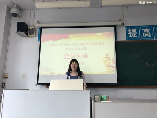 2019年7月5日,重庆市第十一中学校高2021级党小组在重庆市第十一中学校逸夫科技楼召开了党员大会,组织全体党员学习优秀党员张富清的光荣事迹。