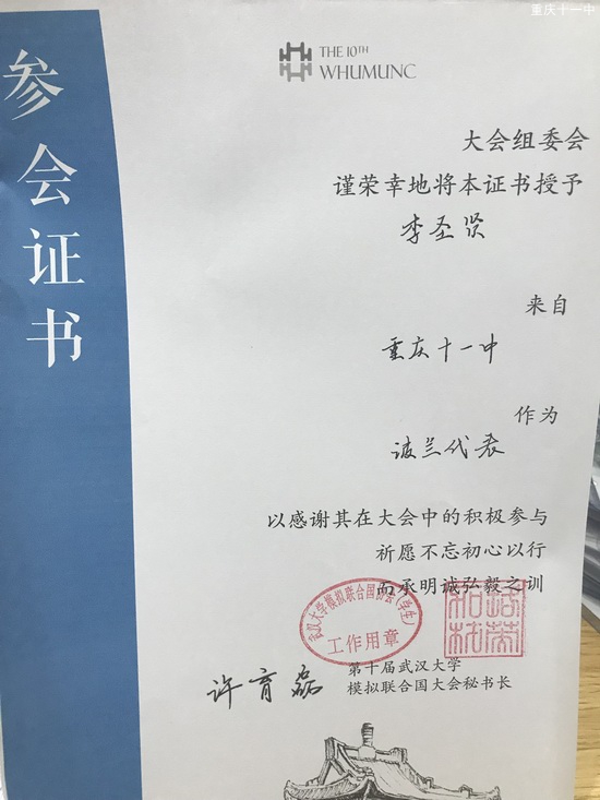 ——记重庆市第十一中学校学子出征武大模联