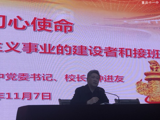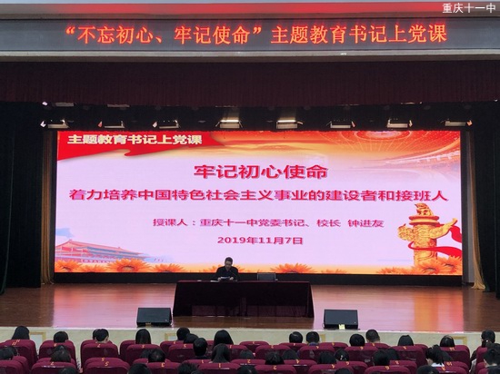 2019年11月7日下午5点,重庆十一中党委在文益堂召开全体党员大会。会议的主要议程是学校党委书记、校长钟进友上党课,党课的题目为《牢记初心使命,着力培养中国特色社会主义事业的建设者和接班人》。会议由学校党委委员谢晓斌主持,区委巡回指导组第五组组长丁长福出席了本次会议。