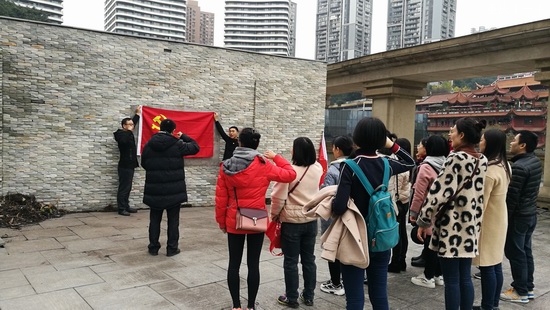 支部党员们为践行“讲红色故事、讲革命精神”活动,从学校出发前往参观位于南岸区玄坛庙野猫溪正街31号的红色教育基地——《挺进报》旧址。在展馆内,党员们聆听讲解,驻足参观展品,了解《挺进报》和陈然同志等革命先烈为川东革命书写的峥嵘岁月,接受着“红岩精神”的熏陶。在展馆的广场前,邓郭峰同志带领全体党员重温入党誓词,深刻缅怀陈然同志“临难毋苟免,以身殉真理”的高尚气节,激励着党员同志们坚持革命传统教育,传承红色基因。回程途中,沿着钟楼至南滨路侧的青石小路,党员们一边行进,一边拾捡沿途的垃圾,用朴实的“保护环境,从我做起”志愿者活动,在学习革命先烈远大理想和崇高品格的同时,还要争做“讲政治、有信念,讲规矩、有纪律,讲道德、有品行,讲奉献、有作为”的教师党员,身揣情怀,坚守初心,不断向前。