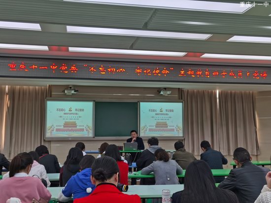 11月14日,根据学校党委安排,校党委委员、副校长肖开模同志作为重庆十一中党委“不忘初心、牢记使命”主题教育班子成员,为初中第一、二、三党支部全体党员上党课——《不忘初心、牢记使命,做新时代的学生引路人》。