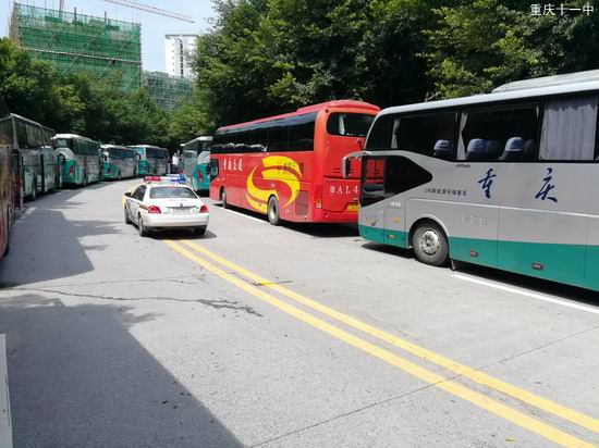 从7月11日下午熟悉考场的环节开始,弹子石大队参与护考的民警们采取规范措施:按标准清场、设置锥筒、拉警戒带、规划路线、对接各段路口、疏导社会车辆等等。并安排两名民警在车队最前方领路,提前到达路口,指挥疏导,确保从十一中本部——CBD校区考场的行车线路能时刻安全,通行无阻。