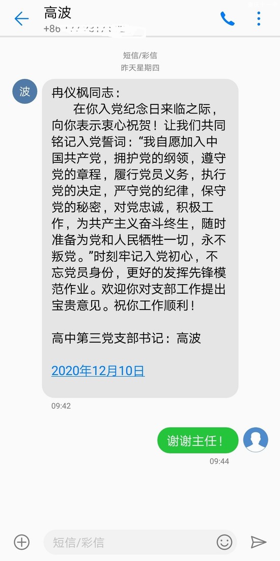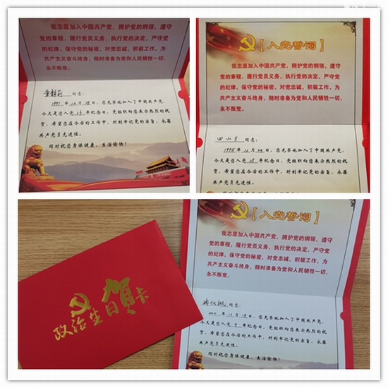 党支部书记高波在党员群里为12月过“政治生日”的党员——赖晓琴、董静莉、田小兰、冉仪峰、王仙梅同志发表了有意义的生日贺信,并将贺信发送到五位党员的手机上。