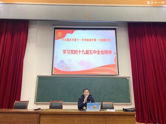 12月15日下午,重庆市第十一中学校高中第一党支部召开全体党员会议,集体学习党的十九届五中全会精神,研究部署年级有关工作。党支部书记梁龙全同志主持会议并讲话。
