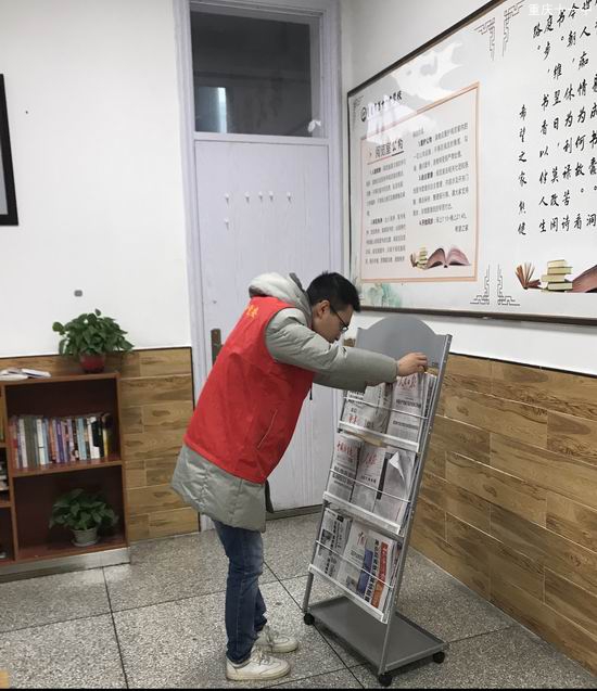 阅览室还需要年级统一管理。于是由胡开波老师撰写阅览室公约、熊健老师原创读书组诗,为同学们明规则,造氛围。由自管会学生轮流值守,维持阅览室秩序;学生自发在读书册上签到,留下阅读印迹;由值班老师不时巡视,关注学生动态;年级领导童国福主任、谭艳红组长、刘东华组长等也到阅览室进行志愿服务,整理书籍桌椅,为给学生创造最佳阅读环境。