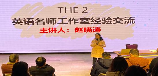 初中英语名师工作室主持人赵晓涛老师以“实践、实战、实效,助力教师成长”为题,从工作室成员介绍、培训过程展示、培训成果展示、存在的问题和反思,以及下期工作打算四个方面,对工作室成立一年来进行回顾和展示。首先,赵老师介绍了工作室的成员,“年青”和“活力”是工作室最大的特点。鉴于工作室大部分学员都是新入职老师,所以赵老师这一年工作的重心就是帮助他们尽快熟悉教材,熟悉教学,熟悉课堂。无论是备课、听课、讲课,赵老师率先垂范,充分发挥名师的引领作用。“樵坪山下,文德中学,星光点点,筑梦未来”,星光见证了工作室学员们一年的付出,相信经过三年的研修,必将收获成长。