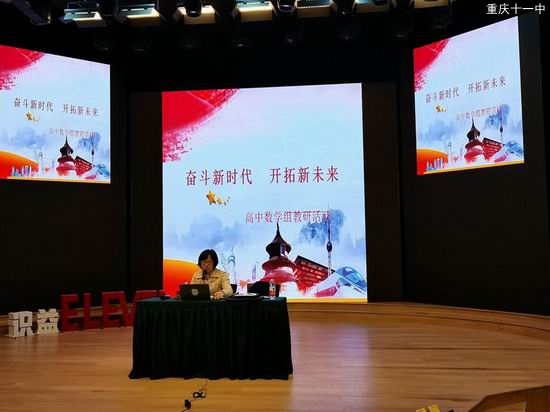 为促进学校高中数学教师教学交流,提升教学智慧,落实核心素养,使全体数学教师更加充分了解新高考动向,2021年3月17日,重庆十一中高一、高二全体数学教师于识益演播厅进行集体教研活动,刘爱莲老师做了《奋斗新时代,开拓新未来》的主题讲座培训。交流了八省联考考试情况以及对老师们日常教育教学进行指导并提出具体要求。