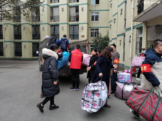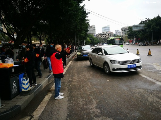 晓云且拂春寒去,清风送暖桃李归。根据学校疫情防控小组的安排,2月28日下午是重庆第十一中学校高2022级全体学子错峰集体返校的日子。为保障开学工作顺利进行,高中第三党支部制定了细致的开学工作表。考虑到学生期末带回物品较多,高中第三党支部志愿者服务队按照开学要求分成不同服务小组都加入到了返校工作中来,他们佩戴上红色的志愿者袖章,穿上红色的志愿者马甲,给早春的重庆带来一抹亮丽的风景,也为学生心中带来一份暖意。