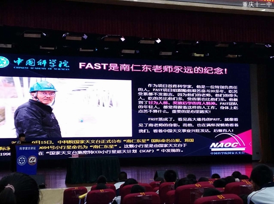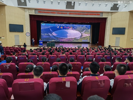 5月24日下午,科学家大讲坛系列讲座之《时代楷模,中国天眼之父南仁东》于重庆市第十一中学校文益堂进行。中国科学院国家天文台天文教育专家郭红峰老师入校为高一年级国科大班学生进行讲座,重庆市第十一中学校党委副书记欧宾书记主持会议。