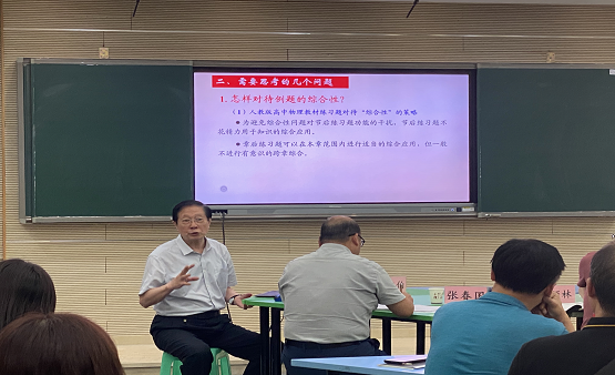 教育部物理课标组核心成员黄恕伯老师带领老师们从课程标准和新教材的角度,在落实物理核心素养的具体实践上,对两堂现场课例进行了深度分析和学习,并作出高度评价,黄老师表示:两位年轻的物理老师在教学中落实“物理观念”的核心素养目标,运用多种方法,顺利完成教学任务,培养了学生对综合问题的分析能力,科学的思维和解题素养。发言中,黄恕伯老师举例阐述了如何提升学生的物理观念、科学思维、科学探究、科学态度与责任的物理学科核心素养,为全区老师们提供了又一次丰富的精神大餐。
