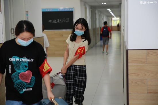 党员、老师志愿者们身着红马甲,早早便来到学校做好准备工作,坚守岗位,有序引导学生间距入校。此外,志愿者们主动挑起“行李大军”的运送重担,穿梭于校门口、学生公寓和教学楼之间,为初次进校的学子提供暖心志愿服务,用实际行动践行志愿精神,为学生安全上学保驾护航。还贴心地准备了各类提示标语和视频在大屏幕上滚动播出,如“新学期,新起点”等,帮助学生调节自己的心态,尽快适应学校的生活,以饱满的热情迎接新学期。