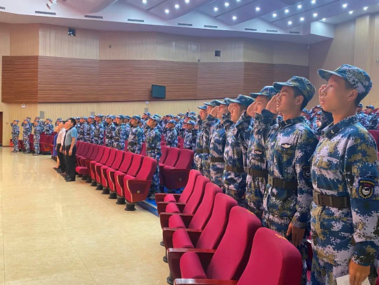 随后,海航2021级新学员代表陈成同学发言。他回顾了为期七天的军训生活,抒发了自己报效祖国的决心。在学校“博文修德精益求精”的文化浸润中,在“听党指挥”“爱军习武”的精神信念指引下,他明白要成为一名优秀的军人,不仅需要充沛的精力,积极的心态,顽强的意志和必胜的信心,还要珍惜集体荣誉,有团队合作意识,避免狭隘的个人主义。