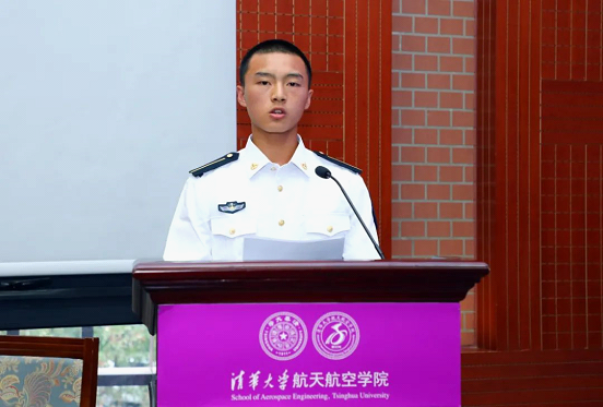 三年前,我怀着参军入伍、报效祖国的志向,考入海军青少年航校学习,在不断的生活学习中,我了解到人民海军正处于跨越转型的关键时期,国家需要一支强大的现代化海军为实现强军梦、中国梦提供坚强力量支撑。随着航母舰载机的蓬勃发展,也更需要戴明盟、张超、曹先建这样逐梦海天的英雄,他们的壮举激励着我扬鞭策马,砥砺前行。三年里,我在思想上坚定逐梦海天,文化上精心打磨沉淀,体能上严格要求自己,最终我有幸以“清华双学籍飞行学员”身份进入百年清华园。初入清华园的我被这个园子典雅厚重的历史文化积淀,严谨求实的学术氛围所震撼。因此,我立志要珍惜在清华的每一天,向清华先辈的家国情怀和崇高追求看齐,不断完善自我,追求卓越,为建成世界一流海军贡献自己的一份力量。