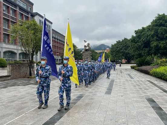 秋风送爽,秋雨淅淅。下午2:20,海航学子在博文楼前整队集合,他们队列整齐,高举旗帜,整装待发。随着教官的一声令下,学员们迎着小雨从西门出发,沿着南滨路向电影院前进。一路上,海航学员们秩序井然,步伐铿锵,精神昂扬,引得众多市民纷纷驻足观望,拍手称赞。徒步中的海航学子,赫然成为了街头一道亮丽的风景线。
