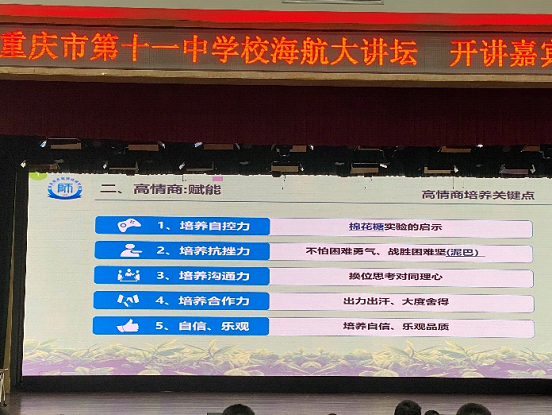 1月25日,重庆市海军青少年航校特邀重庆市南岸区教师进修学院党委书记杨旭红同志来校开设海航大讲坛,为学员们带来《走进海航 我心飞翔》心理讲座,解锁海航学子们在学习、生活中的成长困惑。