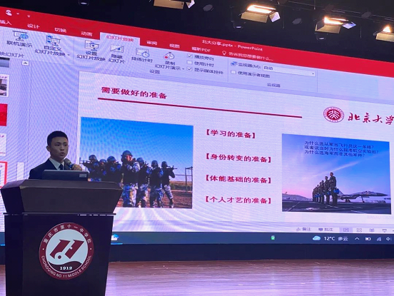 “男儿有志思报效,祖国召唤去军校。”海航大,海军成长的摇篮,而“思想自由兼容并包”,作为精神高地与文化中心的北京大学,谁不向往?活动第一个环节为现就读于北京大学的六位学长为大家做了以“鹏飞万里,北大等你”为主题的活动分享。