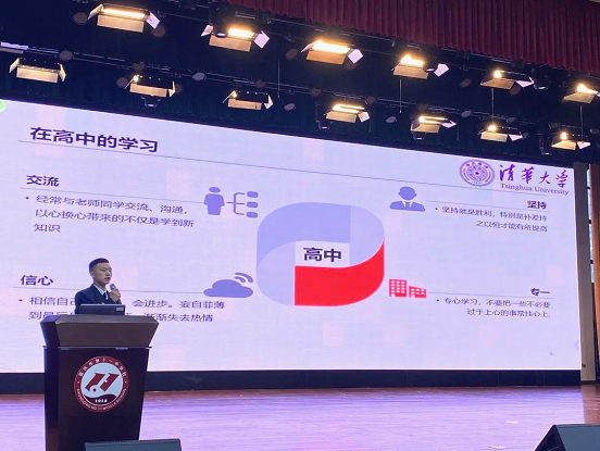 刘焘生学长简单地介绍了清华大学的优美风景、微积分课程的小班学习之后,特别强调要进清华少不了四个关键词:交流、坚持、信心、专一。他说,要得到学习和体能的双重收获,必须踏实、自律,这样才能 “抓住机遇,铸炼自己,提高自己”;谭彬学长对清华大学丰富多样的课外活动与别开生面的课程设置的介绍,引得海航学子们心生无限向往;尹红学长就身体各项技能的提高与身体视力的养护等方面,带给大家保持毅力的有效指引。