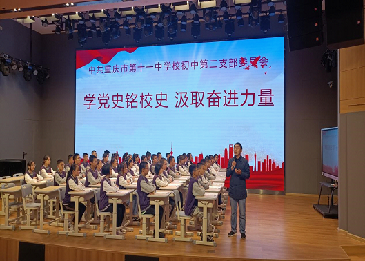 4月12日,为庆祝重庆市第十一中学校建校110周年,重庆十一中初中第二党支部开展的“学党史铭校史,汲取奋进力量”系列主题活动在文德校区识演播厅成功落幕!