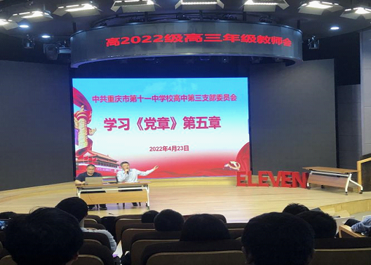 4月23日,高中第三党支部在校本部识益演播厅举行了4月党员大会暨主题党日活动。校领导莅临指导。