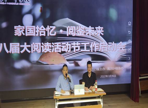 十年阅读史,校历新征程。在学校的整体部署下,在主办方高2023级的精心策划和协办方高2024级的通力配合下,“家国拾忆·阅鉴未来”第八届大阅读活动节工作启动会于2022年3月16日在无界剧场举行。