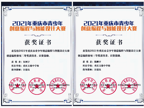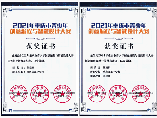 “2021重庆市青少年创意编程与智能设计大赛”获奖简讯