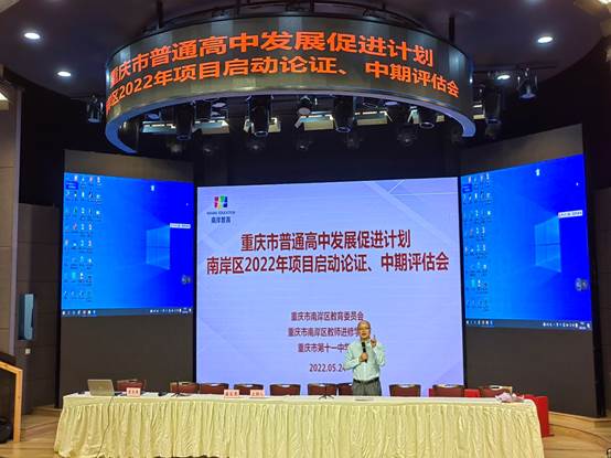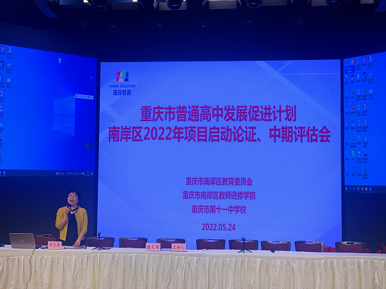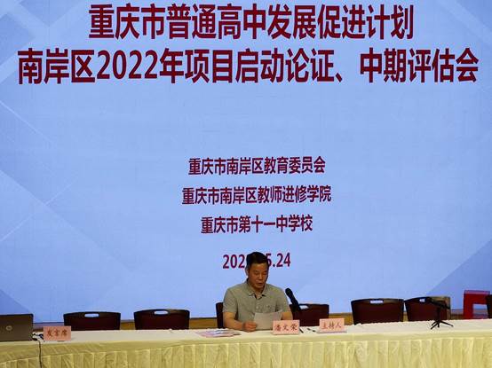 2022年5月24日,重庆市普通高中发展促进计划——南岸区2022 年项目启动论证、中期评估会在重庆市第十一中学校如期举行。本次会议由重庆市南岸区教师进修学院副院长潘文荣主持,重庆市教科院领导及教研员周智良、龚兴英、张文革、黎聚才、陈鹏磊、谢倩倩莅临现场指导。南岸区各个学校的课程创新基地、精品选修课程、优秀学生社团、校本教研基地、新课程新教材实施示范校等多个项目的负责人和成员参加了本次会议。