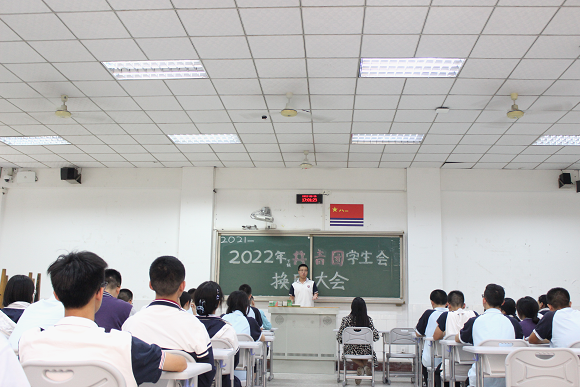 在六月十六日下午五点,我校团委于博文楼三楼举行了2021-2022年下期共青团学生会换届大会。换届内容主要分为三部分:(一)高2023级两位学生会主席对学生会寄予未来发展期望;(二)六位高2024级学生会成员竞选主席;(三)学生会负责老师冯浩韵老师对2024级代理主席和各部门代理部长提出要求与展望。