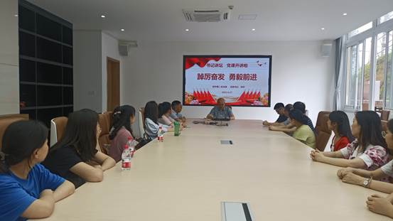 接下来,刘宇同志给党员们上党课,主题是《踔厉奋发  勇毅前进》。党课主要结合学习习总书记在中国人民大学考察时候的讲话的重要精神,联系我们支部的实际谈谈认识和体会。我们是一所中学校,要针对青少年成长的不同阶段,有针对性地开展思想政治教育,因为青少年思想政治教育是一个接续的过程。