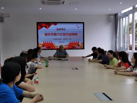 首先,刘宇书记带领党员同志对习近平总书记的相关讲话精神进行了学习,还向老师们传达了重庆市第六次党代会的精神。他主要讲述了重庆市第六次党代会大会主题、会议议程,过去五年工作的回顾总结以及今后五年全面从严治党的主要任务。