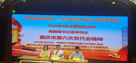 2022年7月8日,高中第二党支部童国福书记向支部全体党员认真传达市第六次党代会精神,研究贯彻落实措施。