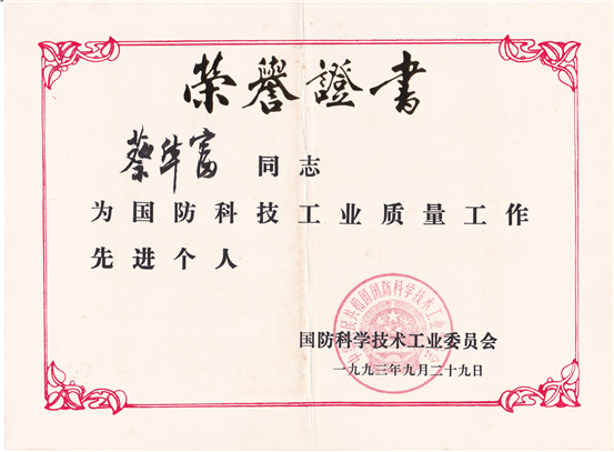 为了充分肯定兵器工业的体系考核工作,国防科工委在’93国防科技工业质量工作会议上,表彰了一批在体系考核工作中辛勤工作、任劳任怨、默默无闻、甘当无名英雄、成绩显著的国防科技工业质量工作先进个人,本文作者榜上有名。
