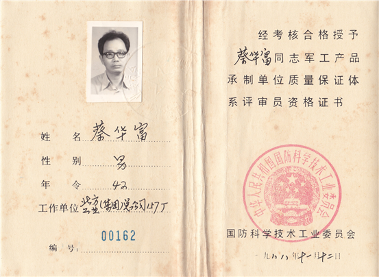 作者简介:蔡华富,重庆市第十一中学校初六三级一组学生,重庆长安公司退休职工,1987年12月至1993年2月借调中国兵器工业总公司质量技安局、时任重庆157厂质量管理处副处长、系国防科工委军工产品承制单位质量保证体系评审员。