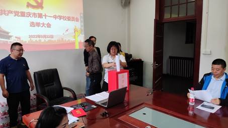 接着,谭远松同志主持会议,推荐产生重庆十一中新一届党委委员、书记候选人初步人选。会议首先通过不计入应到会人数的党员名单。除去以上不计入应到会党员人数,本次应到会党员32名,实际到会22名。按照要求,参加会议的党员需超过应到会人数一半,会议有效。