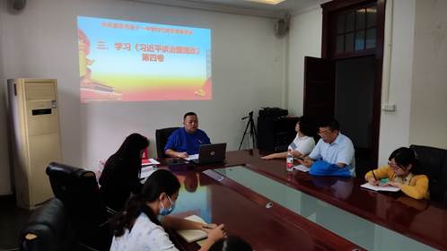 随后,支部书记谭远松同志带领全体党员同志学习《习近平谈治国理政》第四卷的部分内容。《习近平谈治国理政》第四卷启示我们:我们要重视总结历史经验是中国共产党的光荣传统和政治优势,坚持用唯物史观认识、把握和创造历史,深刻理解党的百年奋斗历史经验的科学内涵和精髓要义,在把握运用党的百年奋斗历史经验中赢得更大胜利和荣光。
