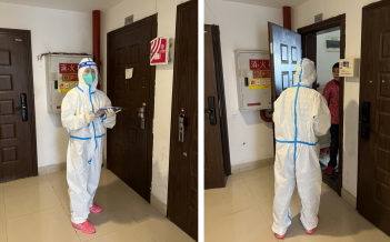 有的小区楼层检测出了感染阳性的患者,整栋楼处于封闭防控的状态。为了让里面的人们按时做核酸,志愿者们要登门服务。他们除了完成核酸检测的任务,还耐心地解答人们的疑惑,安抚他们的情绪。