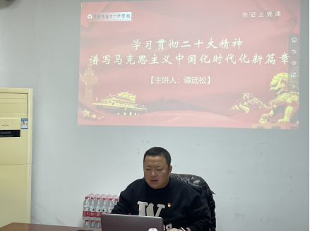 最后,支部书记谭远松同志给全体党员上党课,内容为“学习贯彻二十大精神、谱写马克思主义中国化时代化新篇章”。谭远松同志讲道:我们要以思想的力量激扬奋进的力量,以理论的主动把握历史的主动,坚持不懈用习近平新时代中国特色社会主义思想武装头脑、指导实践、推动工作,牢牢把握“两个结合”、“六个必须坚持”,不断谱写马克思主义中国化时代化新篇章,中国共产党一定能带领人民创造新的历史伟业!
