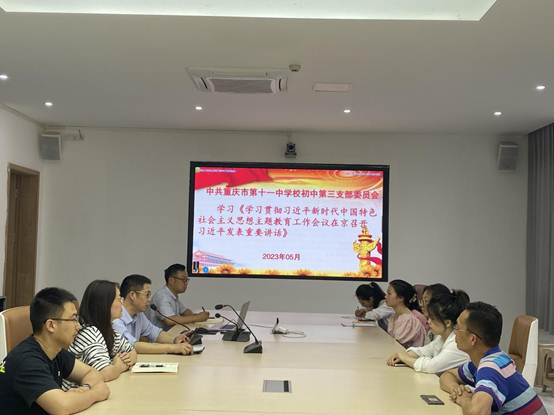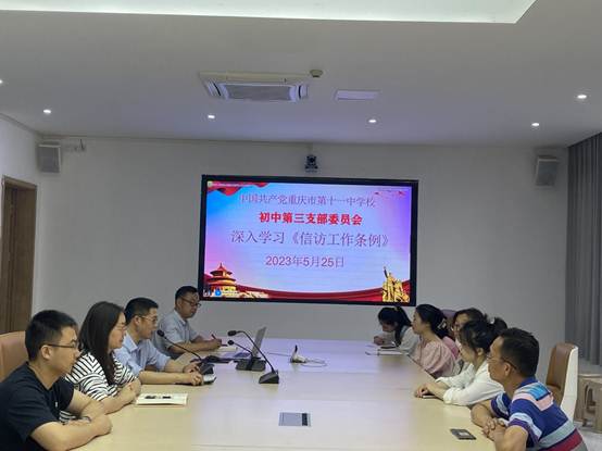 5月25日下午,初中第三党支部举行本月主题党日活动,共同学习了《中共中央政治局召开会议 研究部署在全党深入开展学习贯彻习近平新时代中国特色社会主义思想主题教育工作》《学习贯彻习近平新时代中国特色社会主义思想主题教育工作会议在京召开 习近平发表重要讲话》《习近平著作选读》(第一卷)《党旗在基层一线高高飘扬》,还学习了《党章》第七章《党的纪律》、《中国共产党简史》第九章《走自己的路,建设有中国特色的社会主义》、《信访工作条例》。