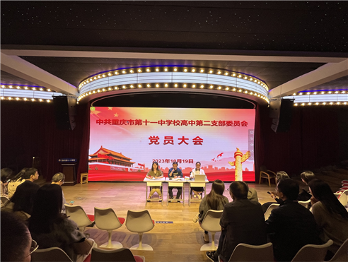 2023年10月19日下午,高中第二党支部在青年无界剧场召开党员大会,集中学习《习近平:在学习贯彻习近平新时代中国特色社会主义思想主题教育工作会议上的讲话》《习近平总书记在中央政治局常委会会议审议第一批主题教育情况和第二批主题教育安排时发表的重要讲话精神》《习近平总书记在黑龙江省哈尔滨市主持召开新时代推动东北全面振兴座谈会上发表的重要讲话精神》《习近平总书记在听取黑龙江省委、省政府工作汇报时发表的重要讲话精神》,还重温了党章第二章《党的组织制度》,学习了《中国共产党简史》第四章《夺取新民主主义革命的全国性胜利》。