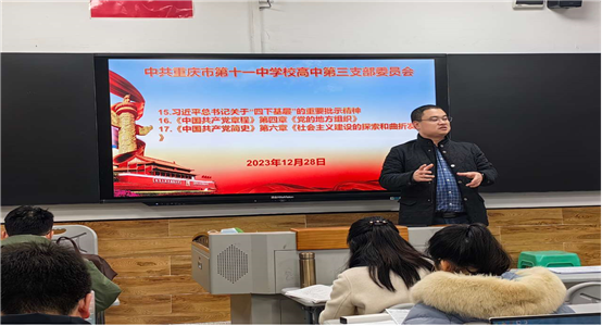 首先,全体党员集中学习中共重庆市第十一中学校委员会各支部党员大会12月规定学习内容。
