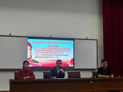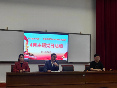 4月25日中午,初中第三党支部召开本月的党员大会和开展了本月的党日活动,会议由支部书记赖德东主持。